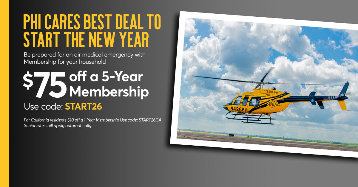 Your membership with PHI Cares will help ensure you and your household dependents are financially and safely covered when transported by PHI Air Medical.