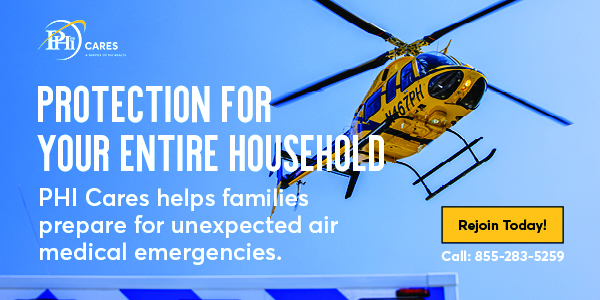 A PHI Cares membership provides coverage for medically necessary emergency air medical transports performed by PHI Air Medical (and affiliated programs). If you have insurance, PHI Cares works with your insurer and accepts it as payment-in-full. If you don’t have insurance, the membership still covers the cost of medically necessary air transport, leaving you with no out-of-pocket expenses.
